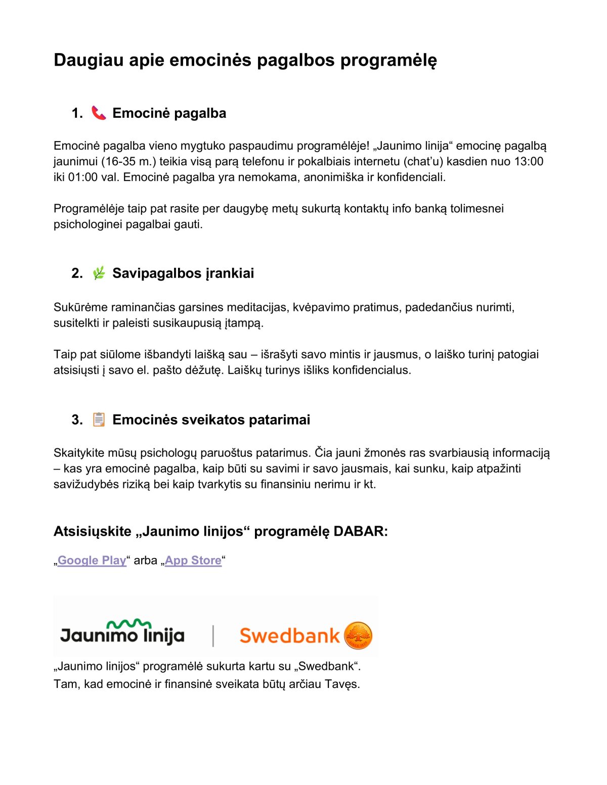 - „Jaunimo linijos" emocinės pagalbos,
