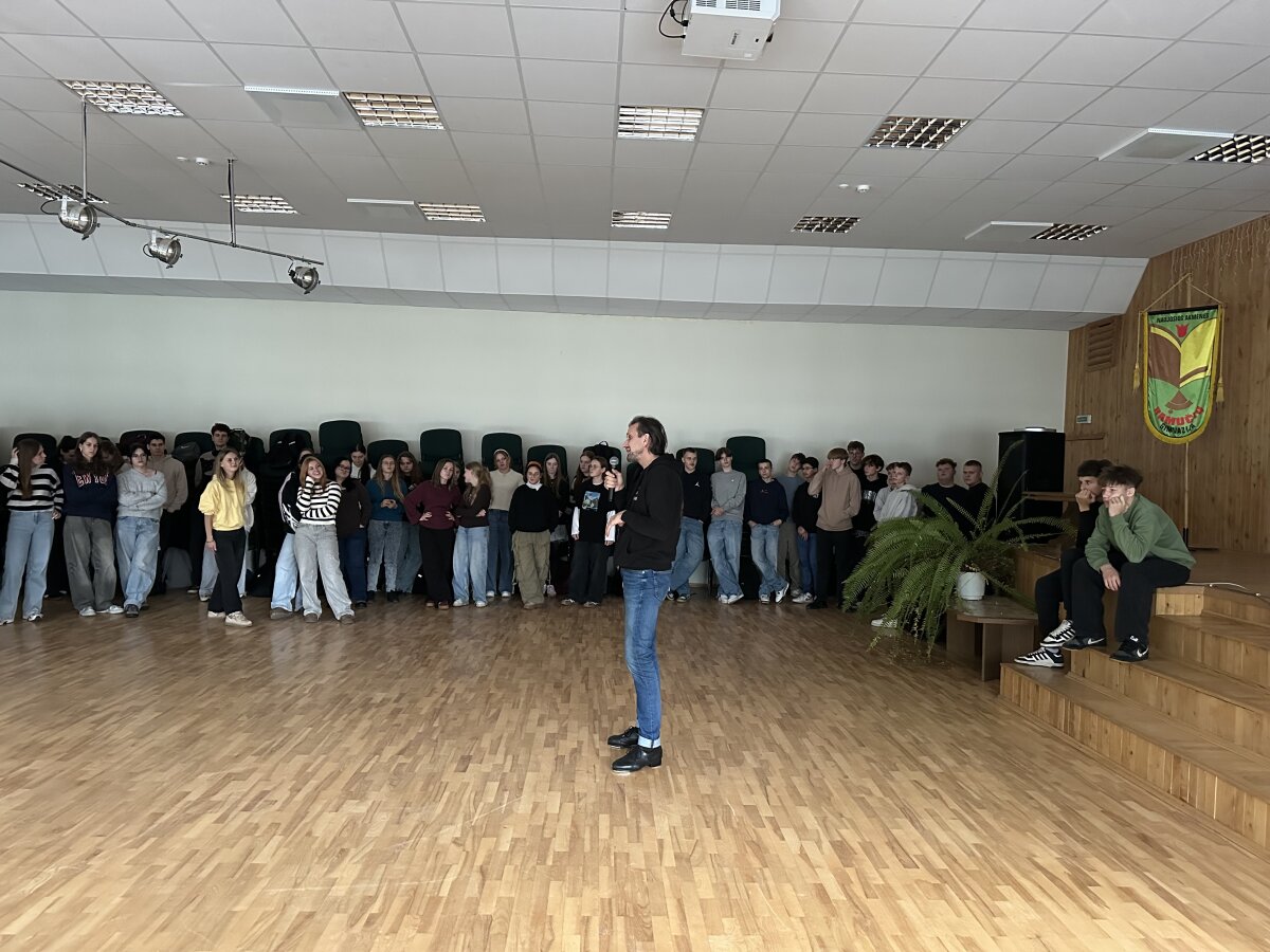 Nuoširdžiai dėkojame „Funny Beat“ šokėjui už profesionalumą, kantrybę ir puikią energiją – ši edukacija įkvėpė, sustiprino mokinių susidomėjimą šokio menu ir padovanojo daug geros nuotaikos visiems dalyviams.