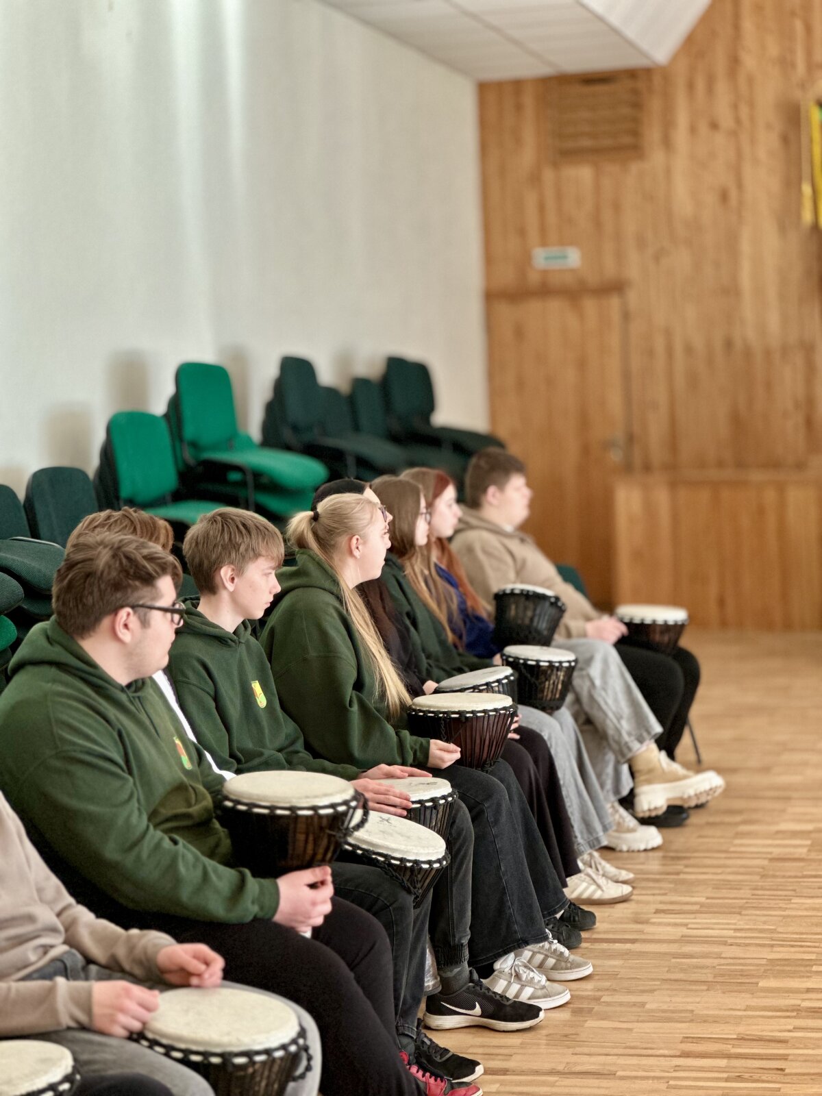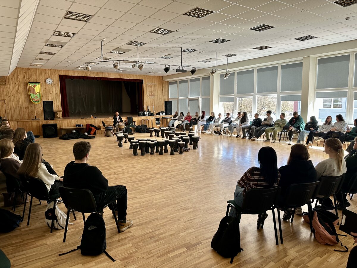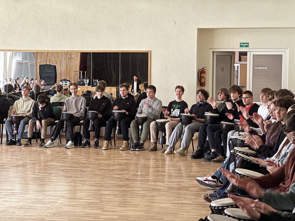 Užsiėmimo metu mokiniai susipažino su tradiciniais būgnais, jų istorijomis ir ritmų įvairove. Svarbiausia – kiekvienas mokinys tapo šios muzikos dalimi: pajuto ritmo galią, bendro skambesio energiją ir drąsiai išreiškė save. Tai buvo pamoka, kurioje mokymasis susiliejo su patyrimu, o žinios – su emocija.