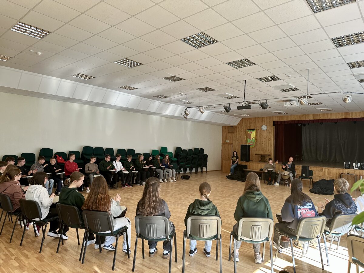 Tai buvo edukacija, kuri ne tik mokė, bet ir jungė. Mokiniai nebuvo stebėtojai – jie tapo kūrėjais. Per ritmą atsiskleidė bendrystė, emocijos ir drąsa būti savimi. Tokios pamokos išlieka ilgiau nei žinios – jos tampa patirtimi. Nuoširdus ačiū Gediminui Mačiulskiui už šilumą, energiją ir įkvėpimą!