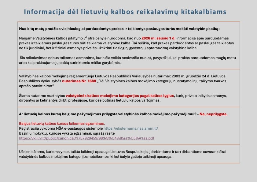 Informacija dėl lietuvių kalbos reikalavimų kitakalbiams