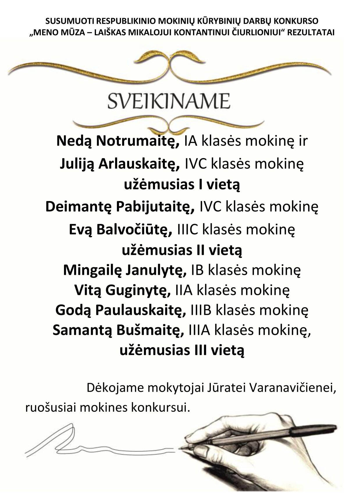 Dėkojame mokytojai Jūratei Varanavičienei, ruošusiai mokines konkursui.