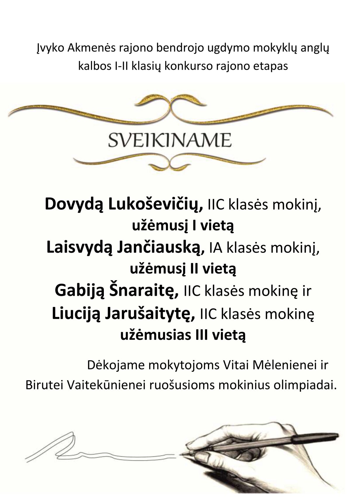 Dėkojame mokytojoms Vitai Mėlenienei ir Birutei Vaitekūnienei ruošusioms mokinius olimpiadai.
