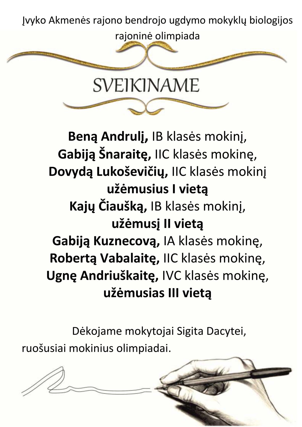 Dėkojame mokytojai Sigita Dacytei, ruošusiai mokinius olimpiadai.