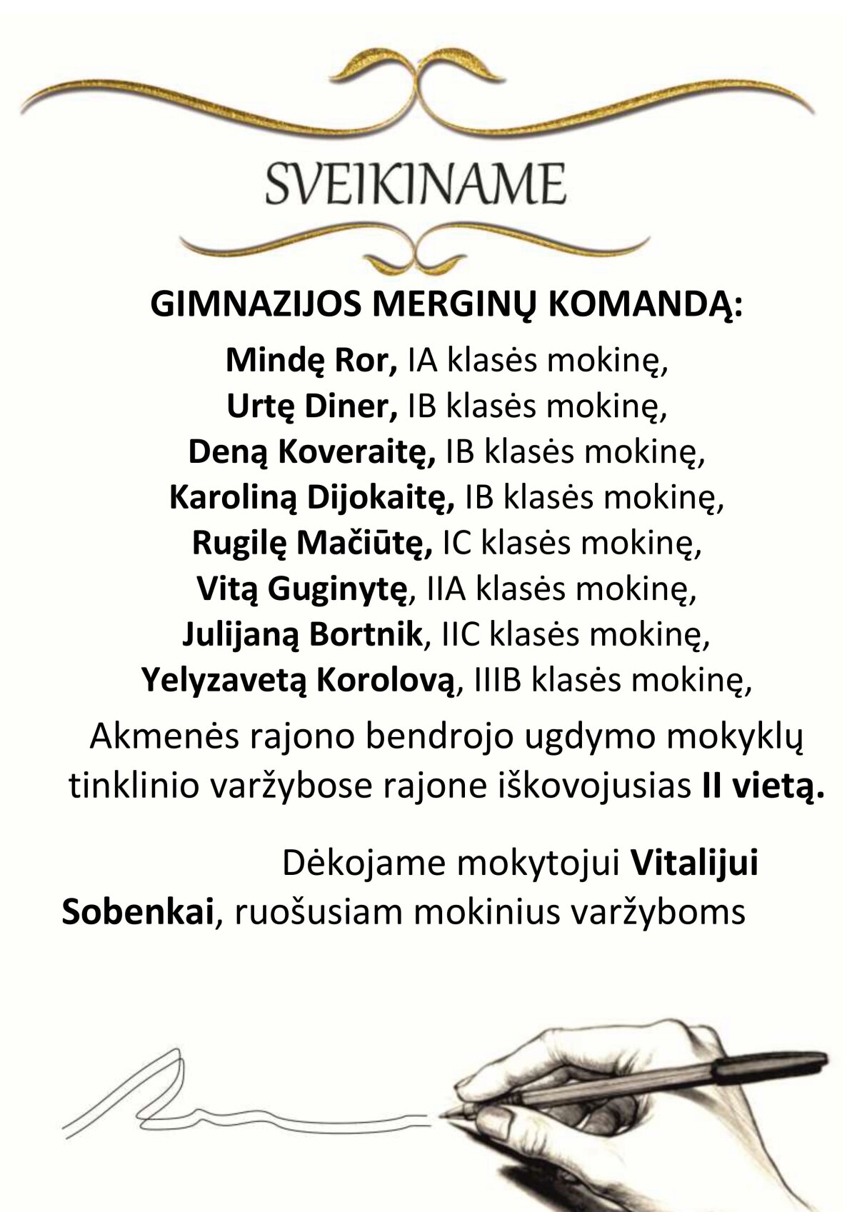 Gimnazijos merginų komandą :