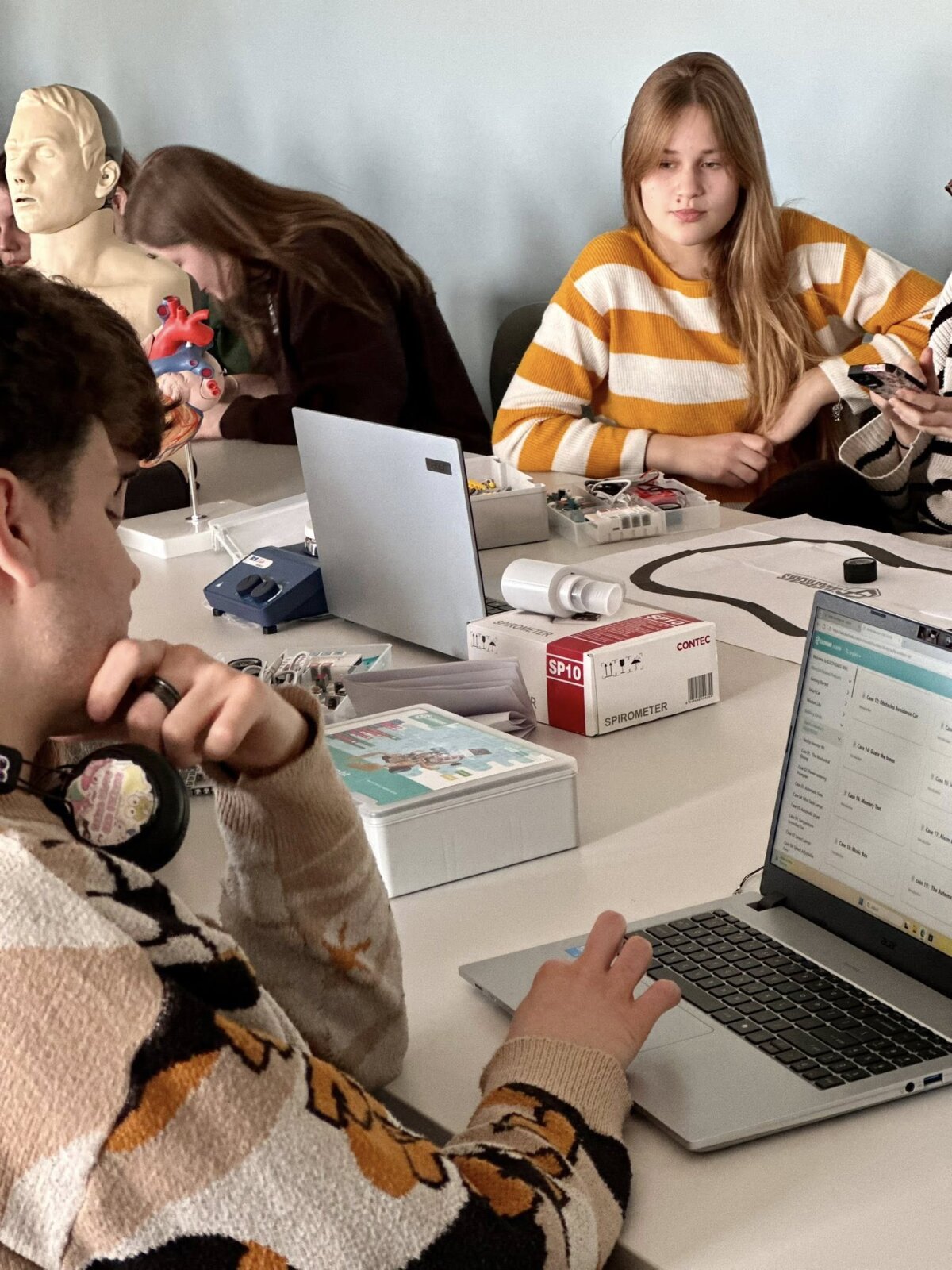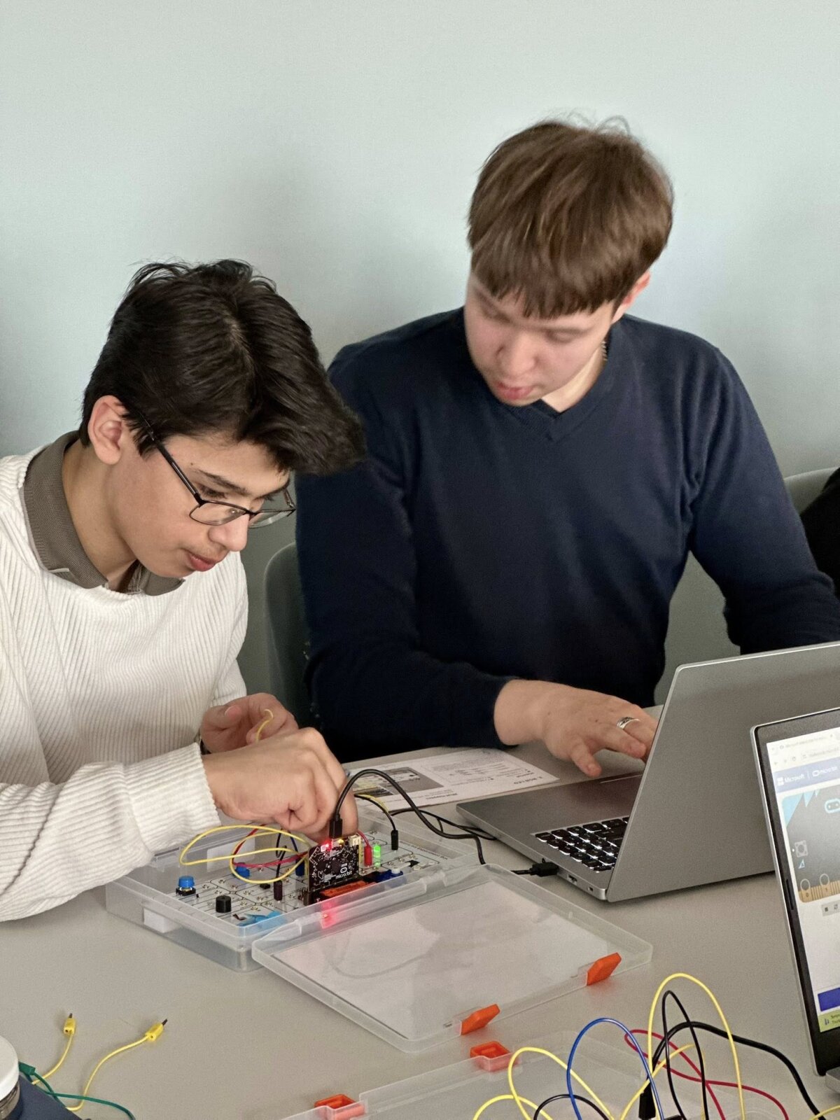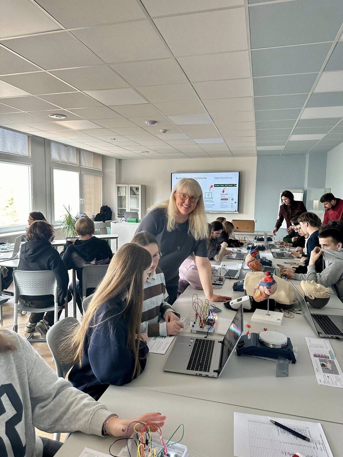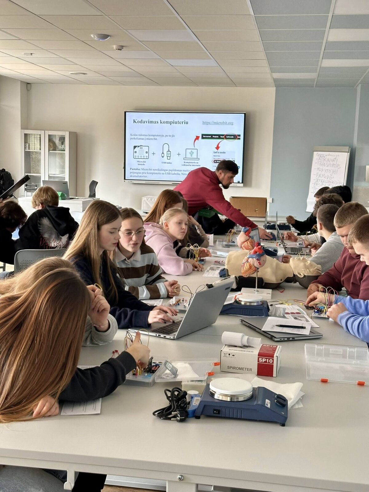 Didelio mokinių susidomėjimo sulaukė praktinė veikla. Dirbdami su micro:bit mikrovaldikliais ir robotikos rinkiniais „Nezha Inventor’s Kit“, mokiniai susipažino su paprasto kodo kūrimo principais ir pamatė, kaip programavimas gali būti pritaikomas valdant įvairius mechanizmus. Naudodamiesi programavimo aplinka Microsoft MakeCode jie kūrė pirmuosius programavimo sprendimus ir praktiškai išbandė technologijų veikimą.